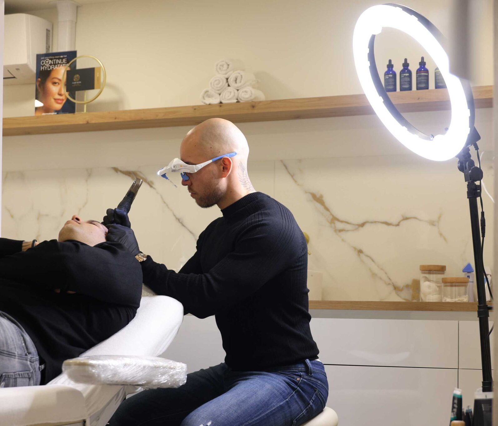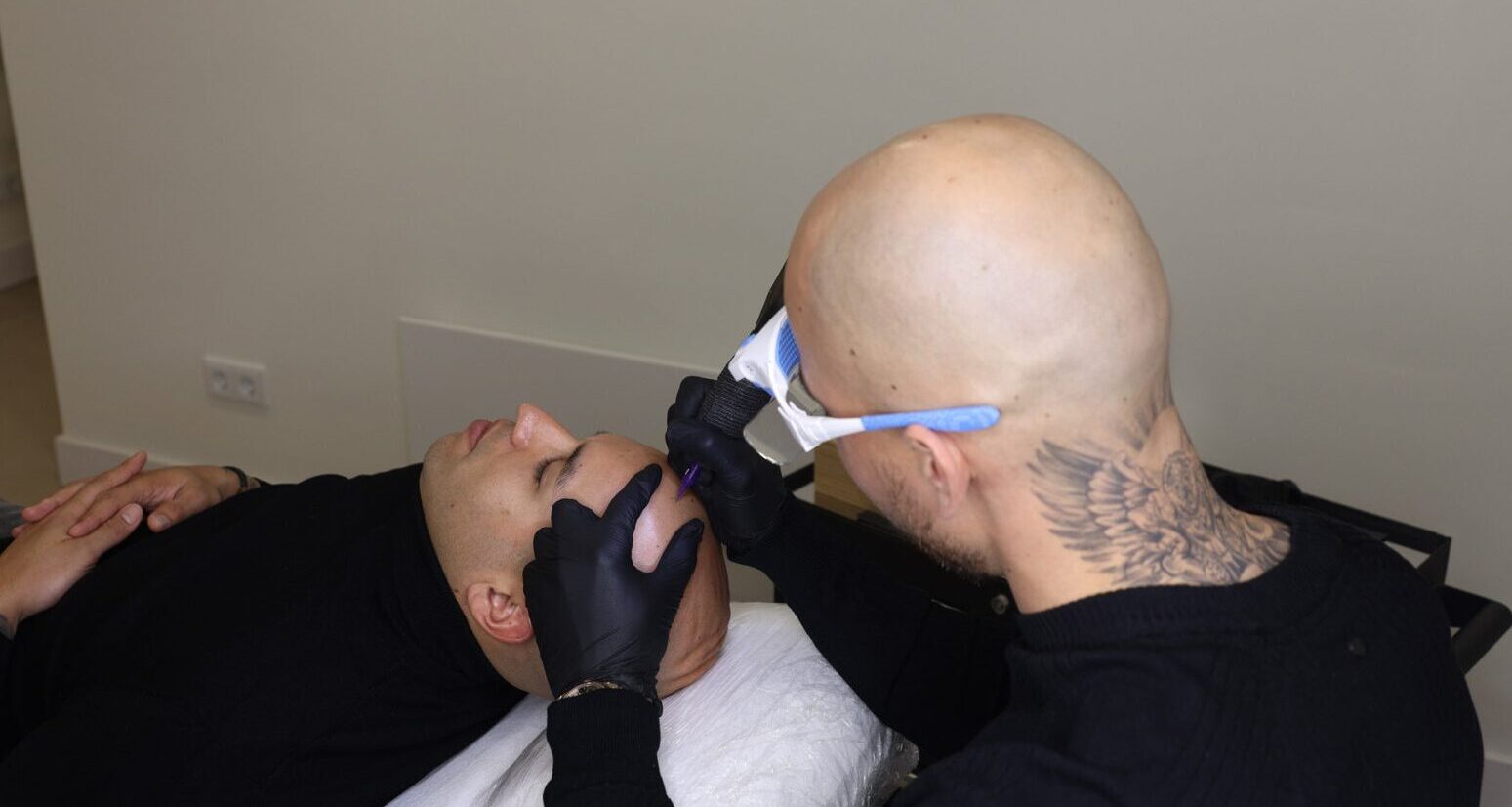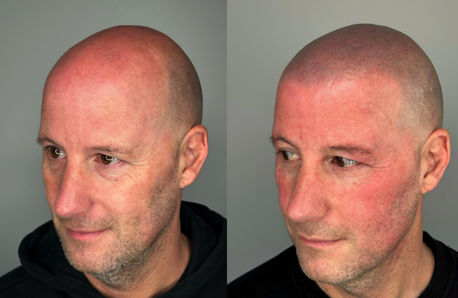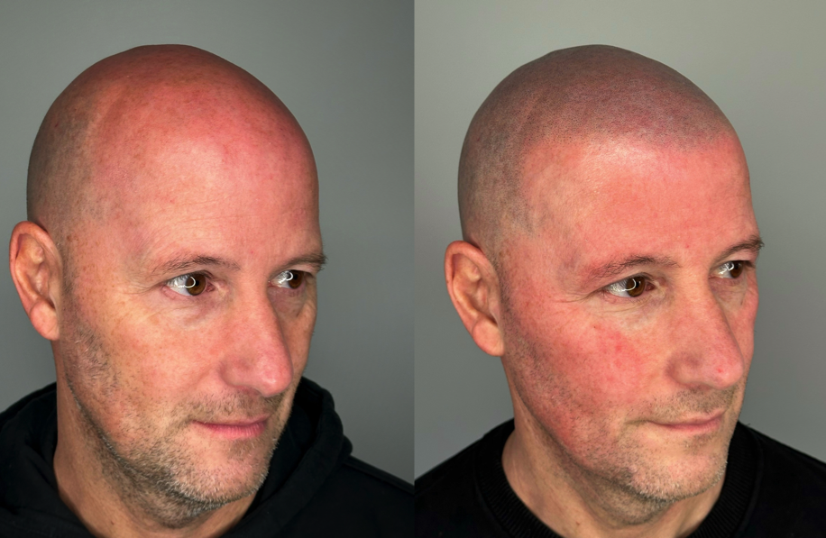 Pigmenten worden met een fijne naald in de bovenste huidlaag ingebracht, waardoor de illusie van haarstoppels ontstaat. Dit camoufleert kale plekken.