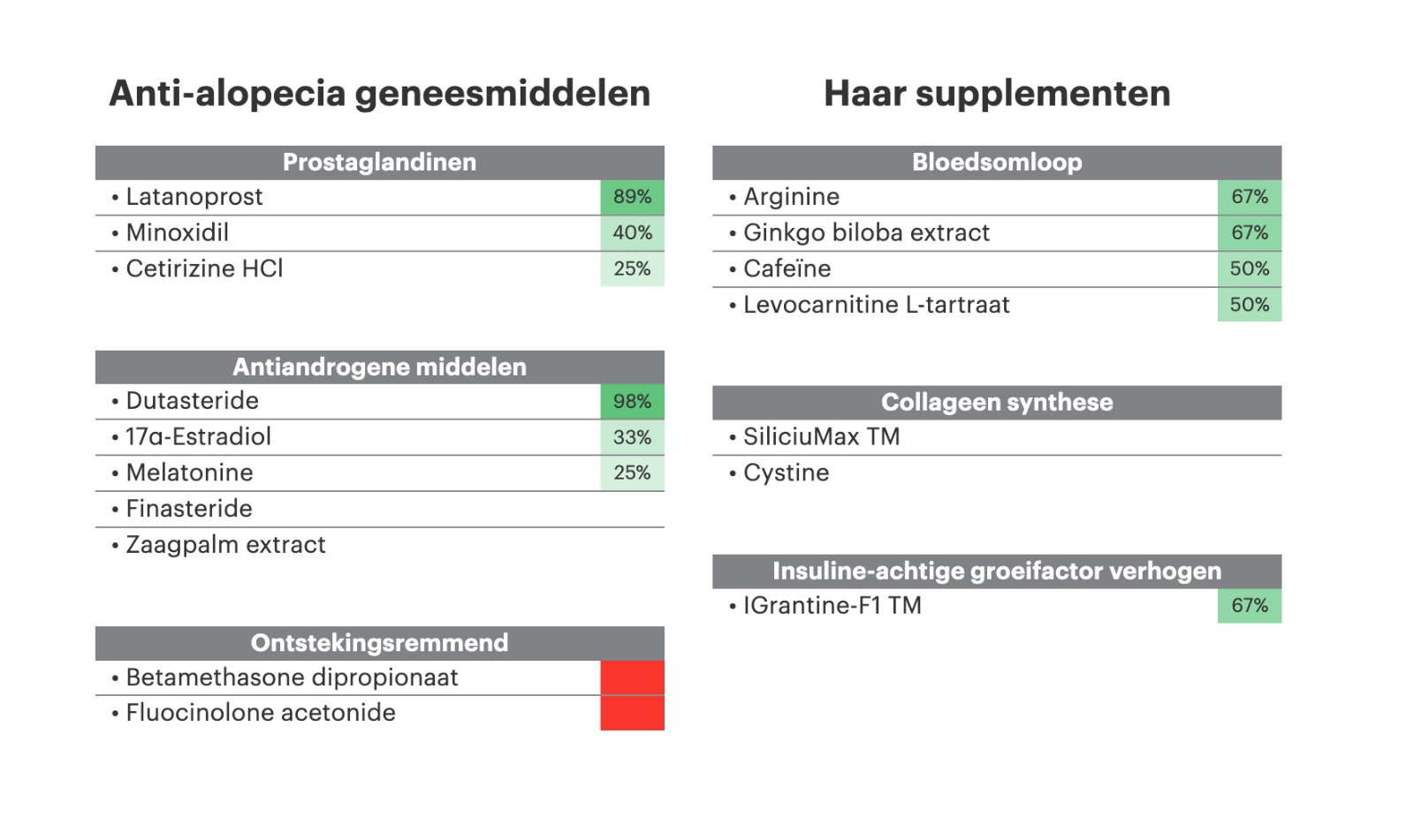 Het behandelplan is op maat gemaakt en gebaseerd op jouw genetische samenstelling en leefstijlfactoren. Het kan aanbevelingen bevatten voor topische oplossingen, orale supplementen en medicijnen die het beste bij jouw situatie passen.